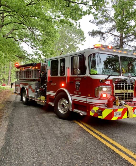 All Hanover Fire-EMS apparatus is labeled within the 400 series, which is a regional program that allows fire apparatus to assist other localities in central Virginia without becoming confused. Engine 401 is the regional identifier for Hanover County Engine 1.